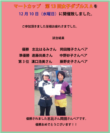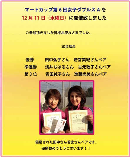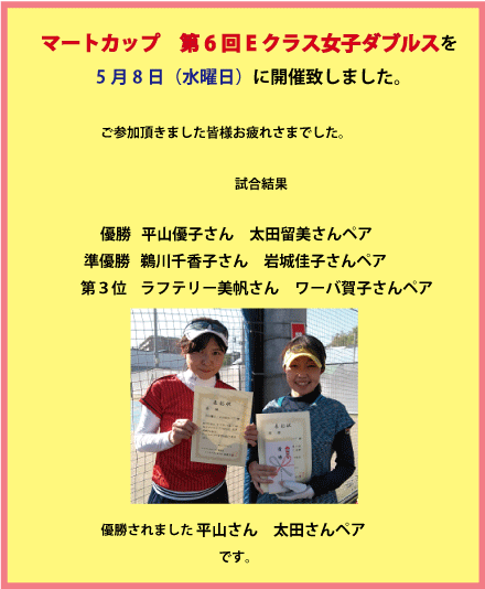 優勝ペア 平山優子さん 太田留美さんペア (第6回女子ダブルスE)