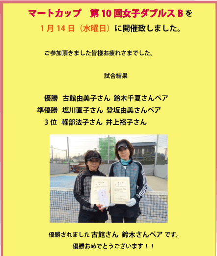 優勝ペア 小林 有希子さん 田中 弘子さん ペア (第2回女子ダブルスB)